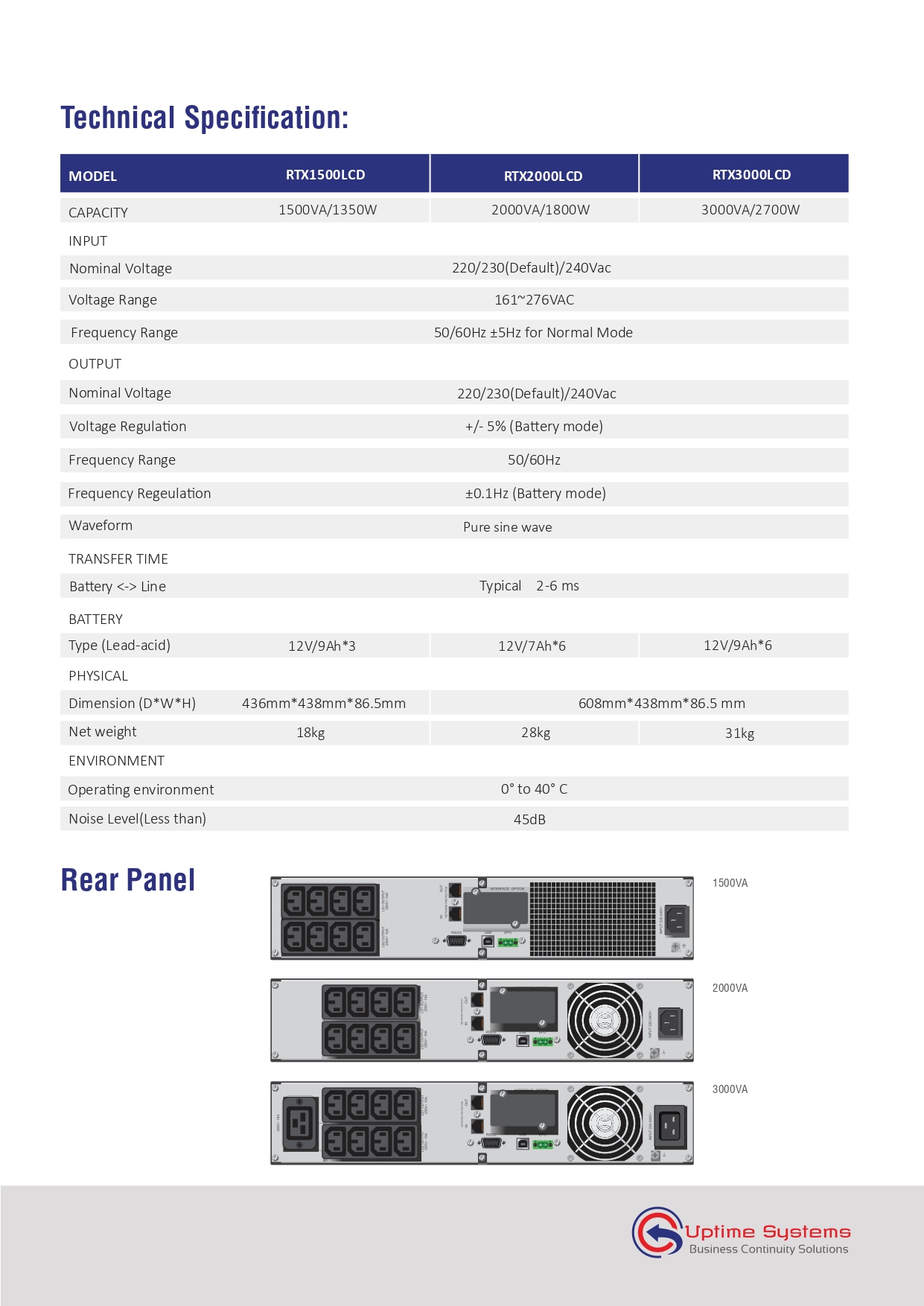 Uptime Systems RTX Series 3000VA Line Interactive Sinewave Rack/Tower UPS with LCD 2RU, Includes Rackmount Railkit & Tower Stand